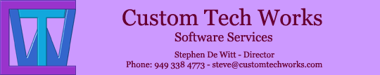 | Custom Tech Works (CTW) offers a modular set of information services for business, industry, government agencies and educational institutions. Our core team has worked together for over 15 years on medium to large- scale projects in enterprise and information analysis, software development and technical trouble shooting for a wide range of satisfied customers. |
